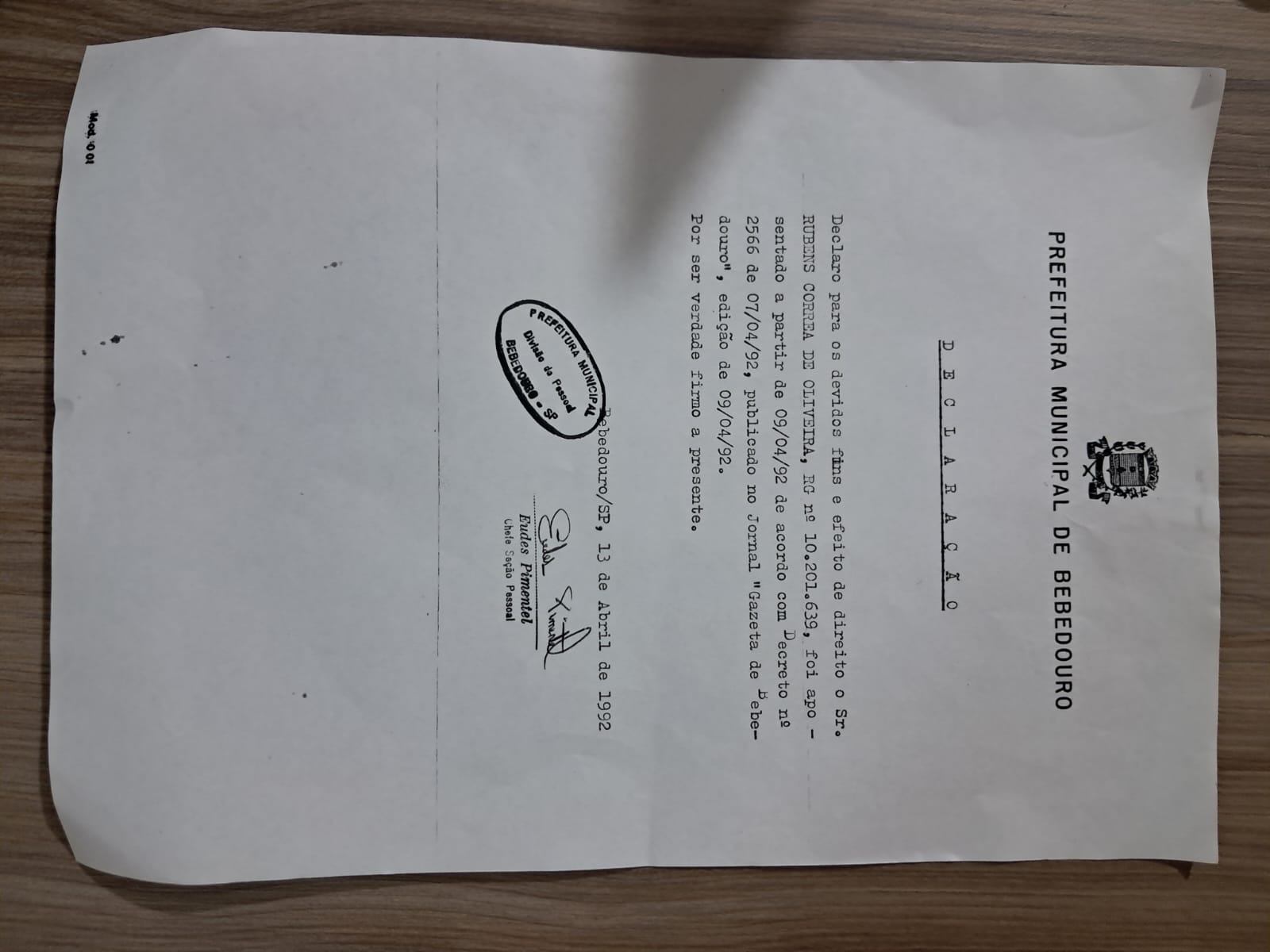 Destinatário: Mauro Benedito de Lima